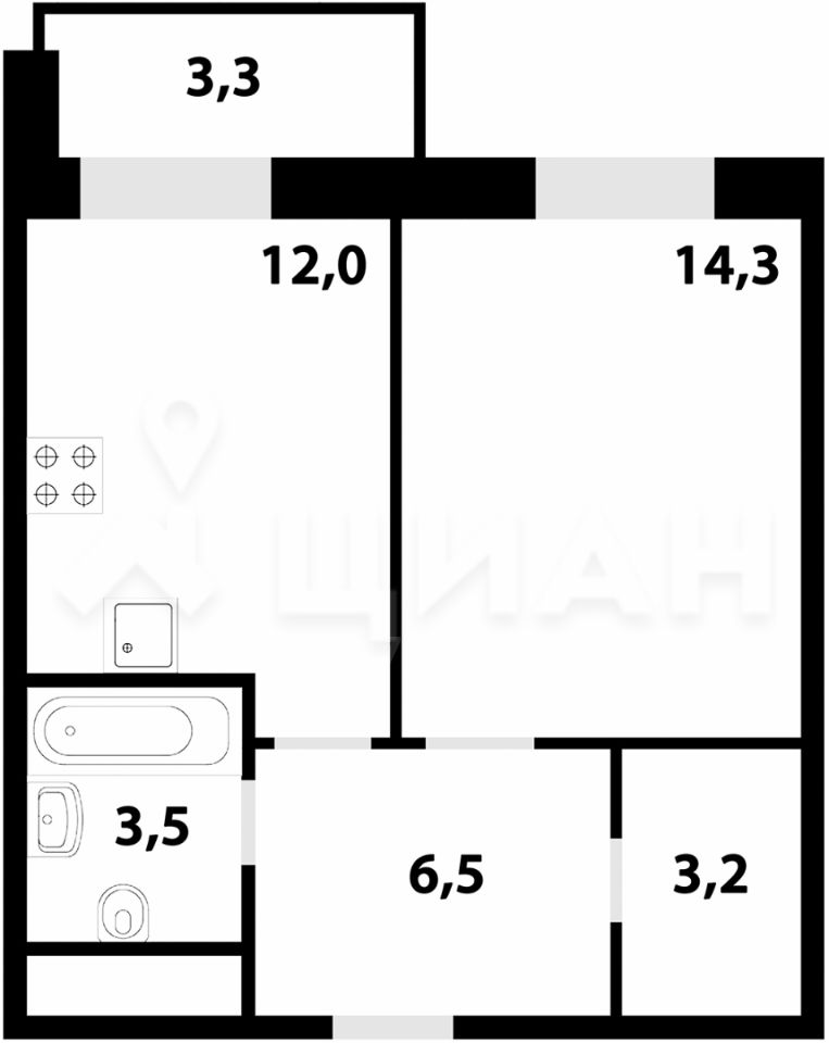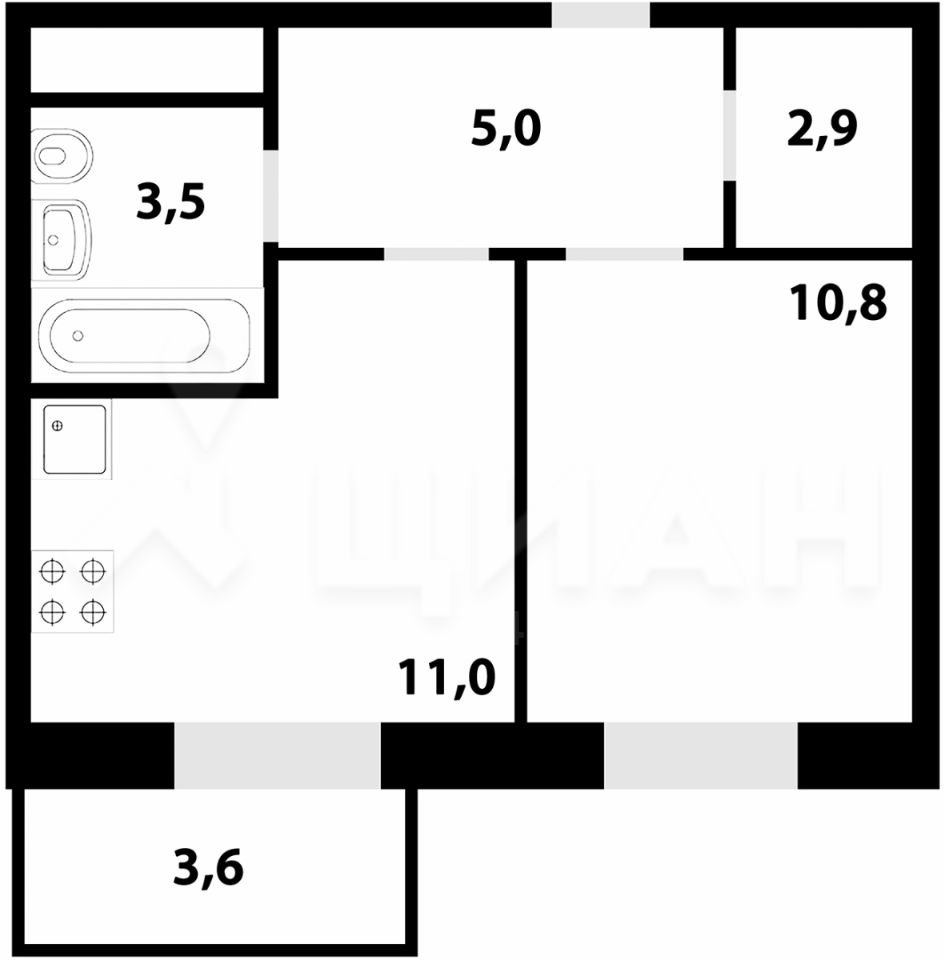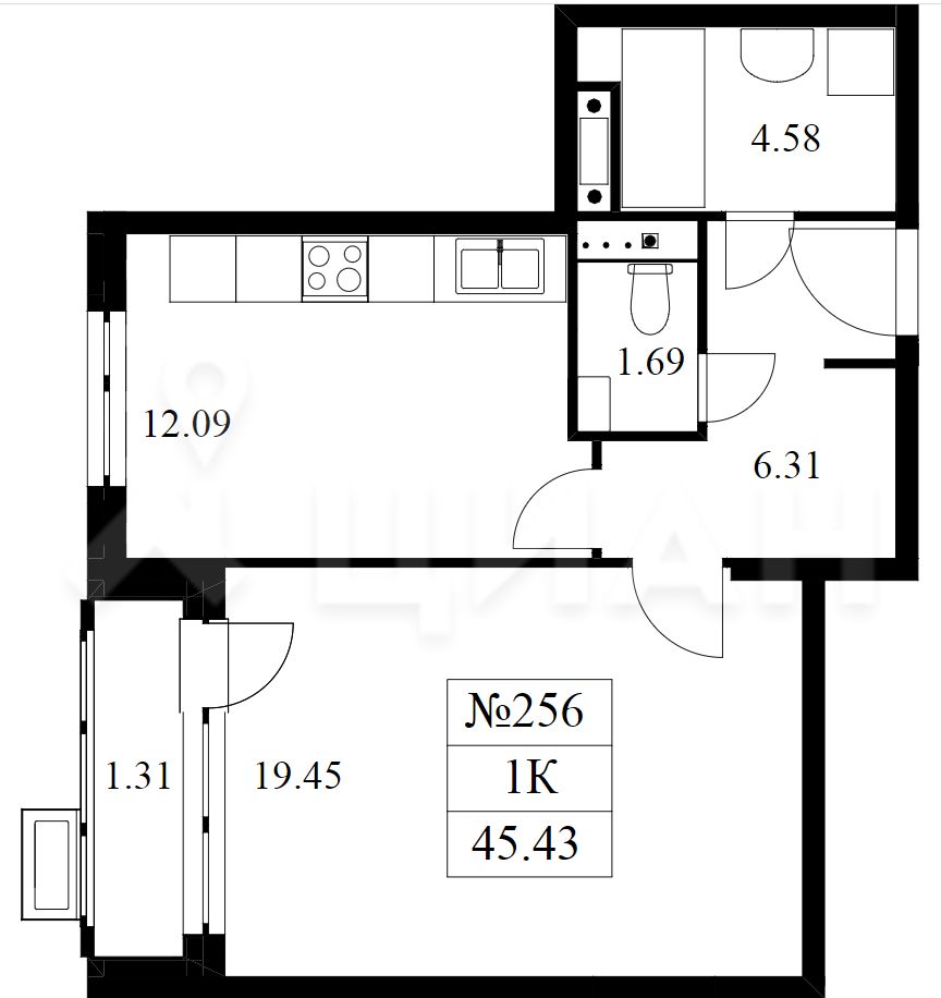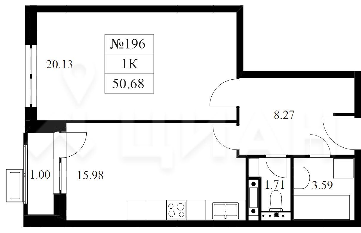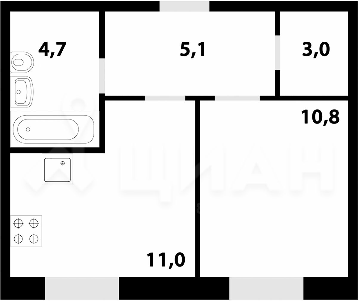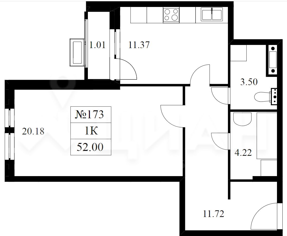1-комнатные апартаменты - от 29,11 до 34,10 кв.м.
