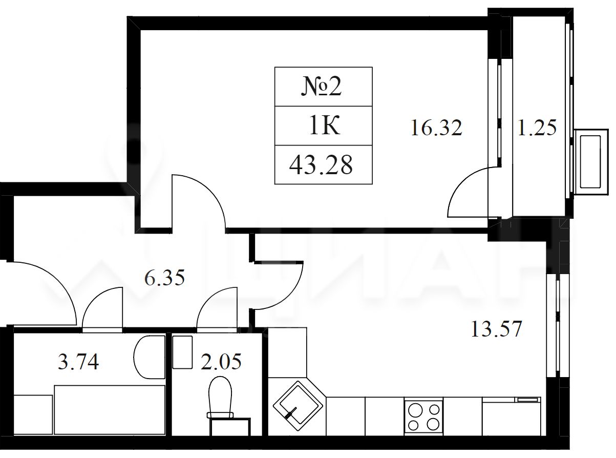 2-комнатные апартаменты - от 45,30 до 66,30 кв.м.