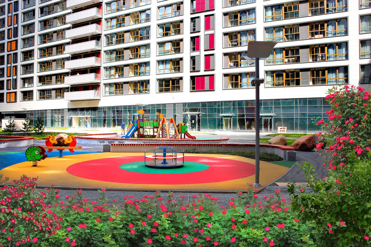 Закрытая внутренняя территория, двор свободный от машин, где будут организованы места для отдыха, оборудованы детские игровые и спортивные площадки. Рядом с ЖК спорткомплекс ЦСКА, ледовый дворец «Мегаспорт».